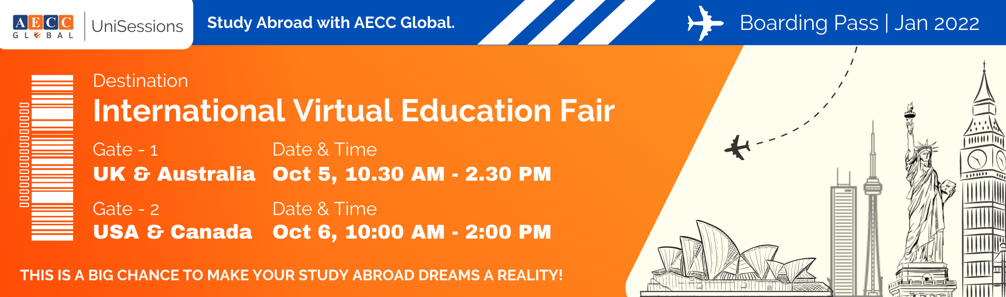 Are you someone who is aspiring to study abroad? Wondering which destination you should head towards to study? Settle back and join us at AECC Global’s International Virtual Educational Fair!